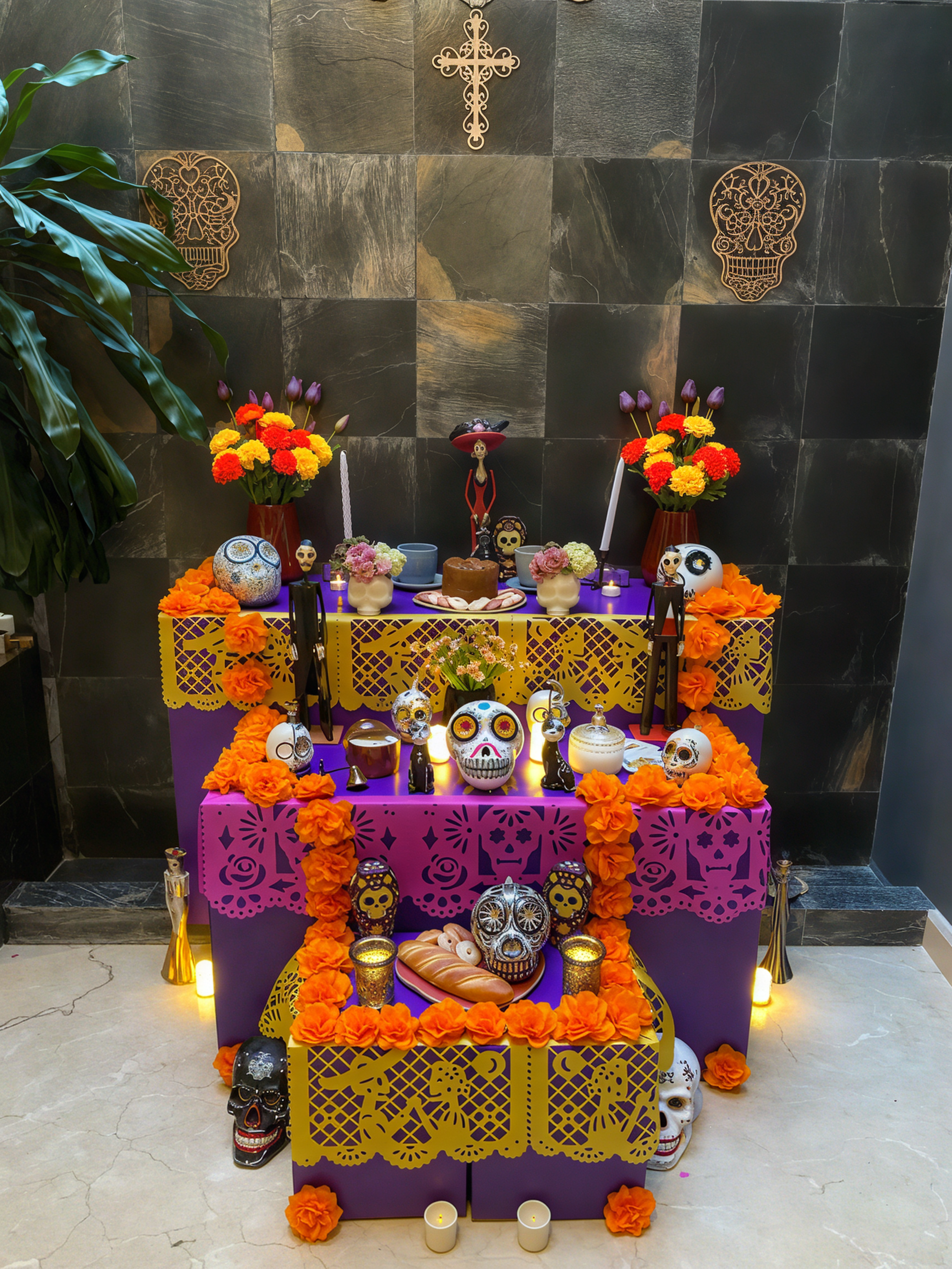 And at the heart of this celebration is the altar, or ofrenda a layered display that combines faith, family, and artistry. Each decoration is chosen carefully, carrying a deeper meaning. When we create or decorate for Día de los Muertos, we’re not just adding objects, we’re building a bridge between our world and the spiritual one.